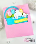 Pink and Main Easter Basket Pop Up Die Set lets you create an interactive Easter basket card. The Easter Basket Pop Up Dies, stand on display and features layered grass, patterned eggs, and a sturdy handle for instant dimension. With fast assembly and a playful finished look, this die set is perfect for Easter cards, spring greetings, and festive party favours. Compatible with most leading die cutting machines. Card folds flat to fit in a standard A2 envelope! Add the Bunny Tail Basket add-on (sold separately) for more fun options