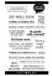This 15 piece clear photopolymer stamp set, Inside Out: Get Well Soon is part of the Say It With Stamps Collection designed by Becky Moore for PhotoPlay. This stamp set features sentiments all about being sick and feeling better. These stamps adhere to acrylic blocks and can be used with your favorite inks, markers, embossing powders, and other crafting mediums (sold separately). This stamp set can be used on cards, scrapbook pages, tags, and other paper crafting projects. The following sentiments are included in this stamp set: GET WELL SOON, YOU GOT THIS, Sending you healing vibes, SENDING CARING THOUGHTS YOUR WAY, I'D RISK GETTING YOUR COOTIES TO HUG YOU, Be gentle with yourself, feel better soon, RIGHT NOW, YOU DESERVE EVERY LITTLE COMFORT A DAY CAN HOLD, You're a tough cookie, Wishing you a restful recovery, HUGS, So sorry you're under the weather, REST RELAX RECOVER, SENDING YOU A GET WELL HUG, and Just checking in to see how you're doing? This stamp set is made in the USA.