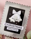 The Spellbinders Bow & Bell Scallop Frame Etched Dies, part of the All About Christmas Collection by Lisa Horton, includes nine thin metal dies for creating a layered rectangular frame design. Nest the three rectangular dies inside the scalloped base or use them separately to anchor other elements. The set also includes a bow and a bell for charming holiday accents.